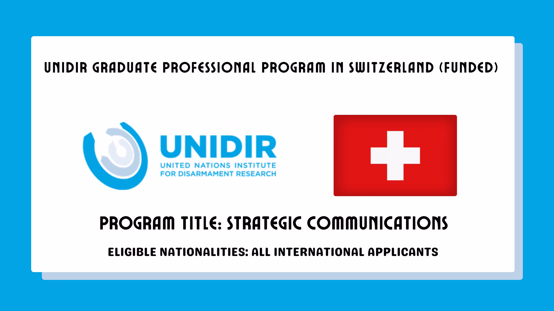 The UNIDIR Graduate Professional Program 2025 in Switzerland is a funded UN internship offering global graduates an opportunity to gain practical experience in strategic communications and digital engagement. With a monthly stipend, professional guidance, and exposure to UN operations, this six-month program is an excellent gateway into international careers in public policy, diplomacy, and communication.